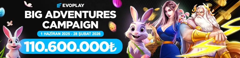 - 1. Evoplay Kampanyası yalnızca gerçek para ile oynanabilir ve üç aşamadan oluşur: Big Adventures Turnuvası, Big Adventures Çarkıfelek ve Big Adventures Anlık Ödüller. Kampanya süresince gizemli bir oyun mekaniği daha sonra dahil edilebilir.